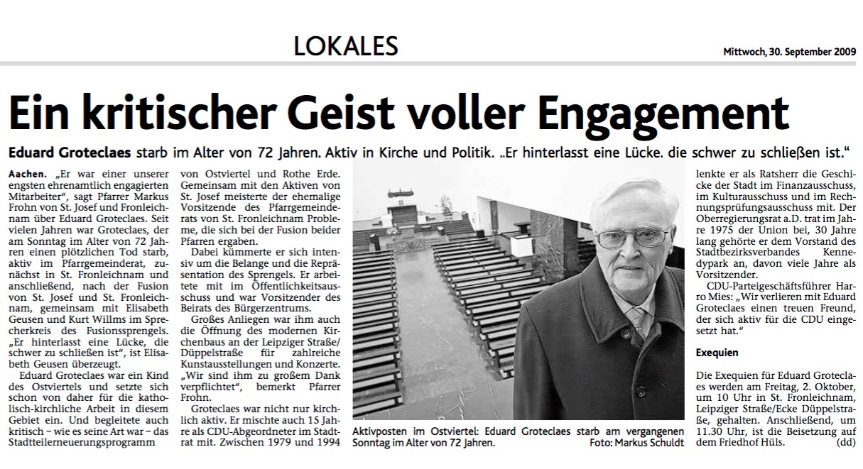Hier sein Nachruf aus der Aachener Presse. (Besser lesbar in unserem Pressespiegel)