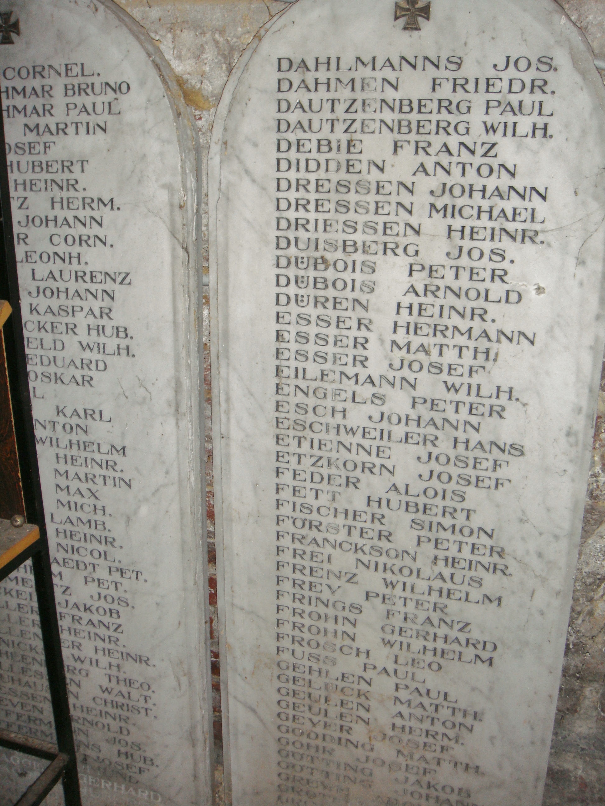 Am 28. Juni 1914 wurde in Sarajewo der österreichische Thronfolger Erzherzog Franz Ferdinand ermordet. Einen Monat später begann der Erste Weltkrieg. Vierzig Staaten waren an ihm beteiligt und 17 Millionen Menschen fielen ihm zum Opfer. Die Kirchen schickten mit Festgottesdiensten die Soldaten ins „Feld", so auch in Aachen. Am Samstag, dem 1. August hingen überall Anschläge, die den drohenden Kriegszustand ankündigten. Gegen 16 Uhr hieß es :"Mobilmachung". Die Pfarrchronik von St. Josef berichtet: „Alle Kirchenglocken läuteten. Die Gottesdienste am Sonntag waren überfüllt. Auf großen Flugblättern wurden die Soldaten vor dem Einrücken zum Empfang der Sakramente aufgefordert." Und weiter berichtet die Pfarrchronik: „ Am 5. August hielt Pfarrer Bohn das Hochamt als Votivmesse „tempore belli-zur Zeit des Krieges". Am Sonntag. dem 9. August war 13 stündiges Gebet. Mehrmals hielt man Kollekten für die Familien der ausgerückten Soldaten. Fortan war an allen Sonntagabenden „Kriegsandacht". Bei den Werktagsmessen wurden drei Vaterunser für den Sieg unserer Waffen gebetet." 2. Teil Katholiken begrüßten den Waffengang Deutschlands mit großer Mehrheit. Doch fanden sich vereinzelt auch Friedensstifter. Die Völker Europas waren überzeugt von der Gerechtigkeit ihrer guten Sache und glaubten an eine Notwehrsituation. Dabei hatten Politiker aller Parteien vor einem Erschöpfungskrieg in Europa gewarnt, doch die zeitgenössischen Akteure konnten sich friedenspolitisch nicht durchsetzen. Nur der Papst, BenediktXV. wurde zum Garanten der Friedensbotschaft. Während des gesamten Ersten Weltkrieges hindurch versuchte er, geistig und humanitär zu helfen. Doch wurden seine Initiativen einerseits wohlwollend zur Kenntnis genommen, andererseits stellte man seine Neutralität in Frage.Was schließlich blieb waren umfangreiche humanitäre Hilfen, für die ihm alle Beteiligten große Anerkennung zollten. Der erste Weltkrieg erschütterte das Gefüge Europas bis ins Mark. Der herrschende Adel wurde hinweggefegt, König-und Kaiserreiche zerbrachen. Es entstand ein neues Machtgefüge. Deutschland war davon nicht ausgenommen. Die Revolution brachte die Republik. Über Kriegsgründe, Kriegshetzer und Friedensstifter kann man sich umfangreich zum „Hundertjährigen" informieren. Vielleicht können diese Hintergründe auch für die jetzige Kriegsgefahr in Osteuropa hilfreich sein. Kehren wir zur Pfarrchronik zurück: Bei den anfänglichen Siegen des deutschen Heeres hatten auf Anforderung von Oberbürgermeister Veltmann stets die Kirchenglocken geläutet. Im Sommer 1917 verlor die Pfarre die mühsam beschafften Glocken. Alle bis auf die älteste kleine Glocke im Dachreiter mußten zu Rüstungszwecken abgegeben werden. Pfarrer Bohn schrieb:" Draußen auf dem Kirchplatz lud man sie auf ihren Totenwagen und fuhr sie von dannen." Auch die Prospektpfeifen der Orgel aus Zinn wurden beschlagnahmt. Der Krieg verlangte von der Bevölkerung viele auch materielle Opfer. Viele kirchliche Gebäude wurden beschlagnahmt, als Lazarett eingerichtet oder als Unterkunft für neue Rekruten benutzt. Viele Schüler erhielten nur Halbtagsunterricht. Wegen der zunehmenden Berufstätigkeit der Mädchen und Frauen gründete Pfarrer Bohn mit anderen Pfarrern einen "Verein der katholischen Handwerksgehilfinnen". Alle der Bevölkerung aufgezwungenen Opfer blieben umsonst. Deutschland war am Ende. Am 11. November 1918 wurde der Waffenstillstand unterzeichnet. Nun setzte der Rückstrom der deutschen Armee ein. Pfarrer Bohn schrieb:"Ein trostloses Bild: Klägliche Reste. Trümmer eines großen Heeres. Es war ein Jammer so etwas erleben zu müssen". Am 30. November rückten die ersten belgischen Besatzungstruppen ein. Die Pfarre hatte 306 Gefallene zu beklagen. An sie erinnerten Totentafeln in einer eigens geschaffenen Kriegergedächtniskapelle im Haupteingang der Kirche. Diese sind heute noch im Keller der Kirche vorhanden und mahnen uns zum Frieden. J. Dieter Freyaldenhoven